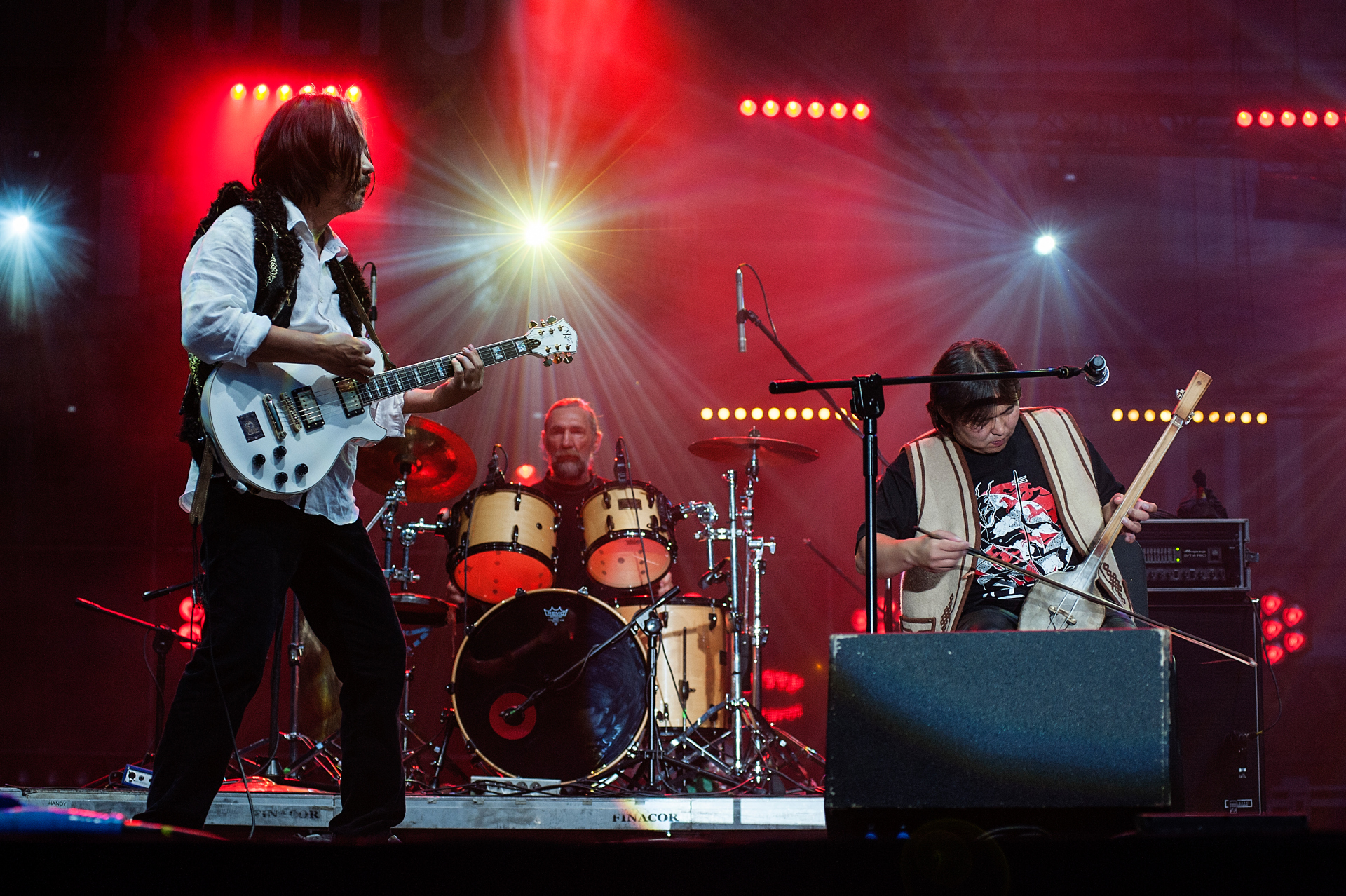 The group’s leader, Albert Kuvezin, has attained cult status in many musical circles. A co-founder of the legendary Huun-Huur-Tu, Kuvezin is a versatile guitarist, songwriter, and an expert in Tuvinian folklore. Paradoxically, he is also a passionate enthusiast of the raw, aggressive guitar sounds of punk rock and hardcore.