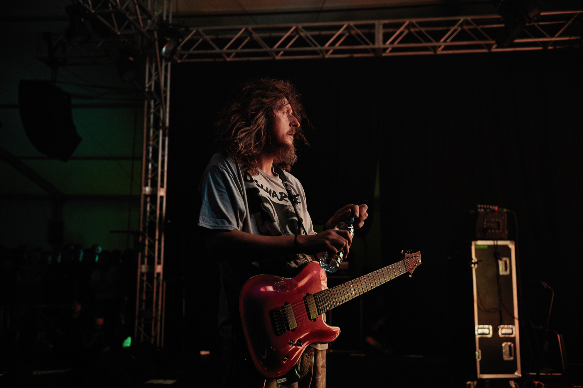 Godflesh to brytyjska legenda industrialnego metalu oraz post metalu, uznawana – obok goszczącego w Lublinie w 2019 roku Ministry – za zespół kluczowy dla tych gatunków muzycznych. Grupa powstała w Birmingham pod koniec lat 80. z inicjatywy Justina Broadricka i Bena Greena, wzbudzając sensację i zachwyt branży muzycznej debiutanckim albumem „Streetcleaner”. Mimo że niedawno przypadło 30-lecie tego legendarnego krążka, doskonale wytrzymał on próbę czasu – płyta wciąż brzmi świeżo i niepokojąco. Mocne, bezkompromisowe, a jednocześnie hipnotyzujące brzmienie, wykorzystanie automatu perkusyjnego, wycieczki w stronę elektroniki i dubu – wszystko to sprawia, że Godflesh to zespół jedyny w swoim rodzaju. Dyskografię formacji zamyka póki co album „Post Self” z 2017 roku, wydany nakładem Avalanche Recording, ale całkiem niedawno Justin Broadrick ogłosił, że rok 2022 przyniesie nowy studyjny album grupy. Na lubelskim koncercie Godflesh zaprezentuje szerokie, przekrojowe spektrum swojej twórczości.